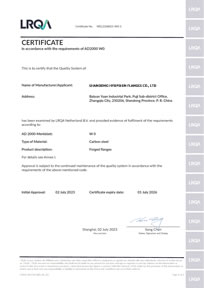 · Certification Scope: Manufacturing of Steel Pipe Flanges;